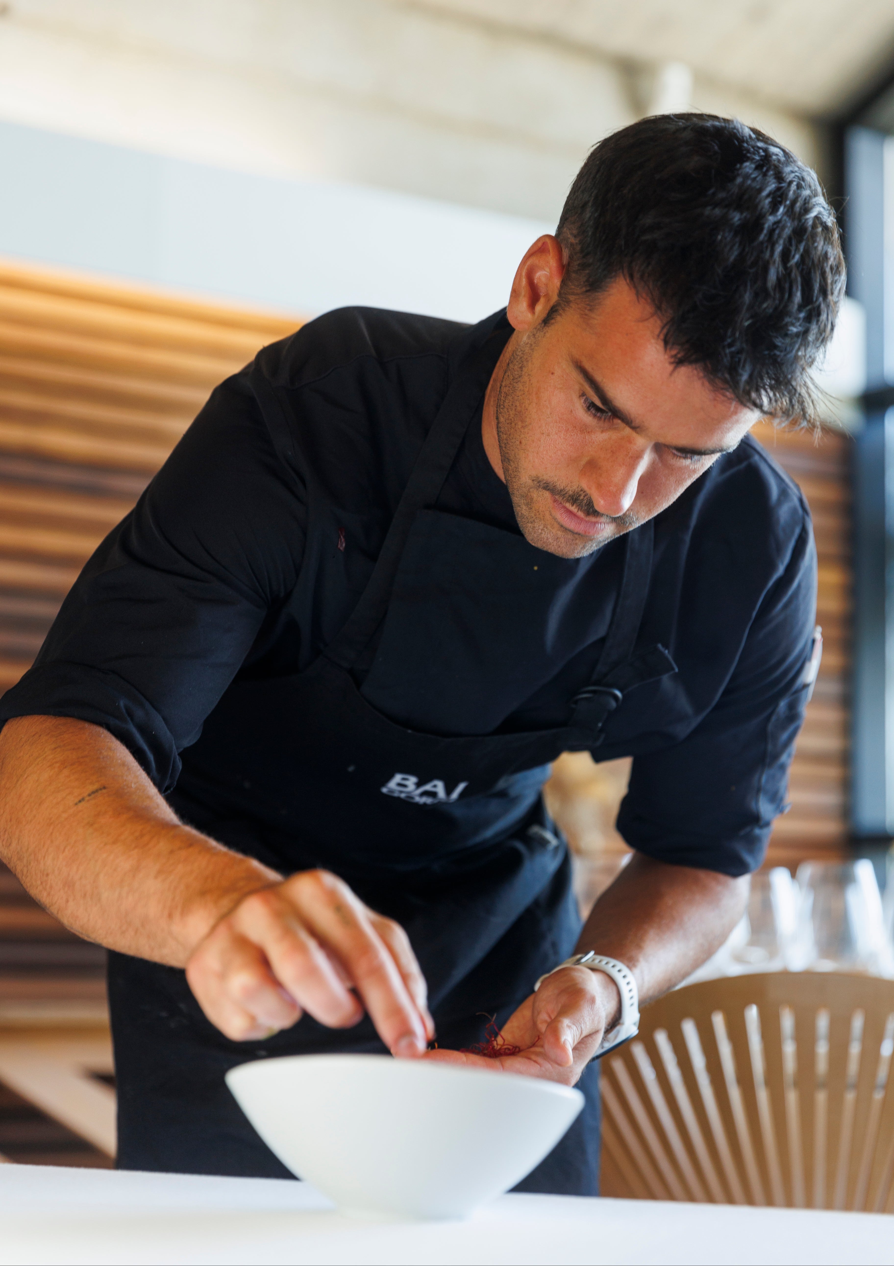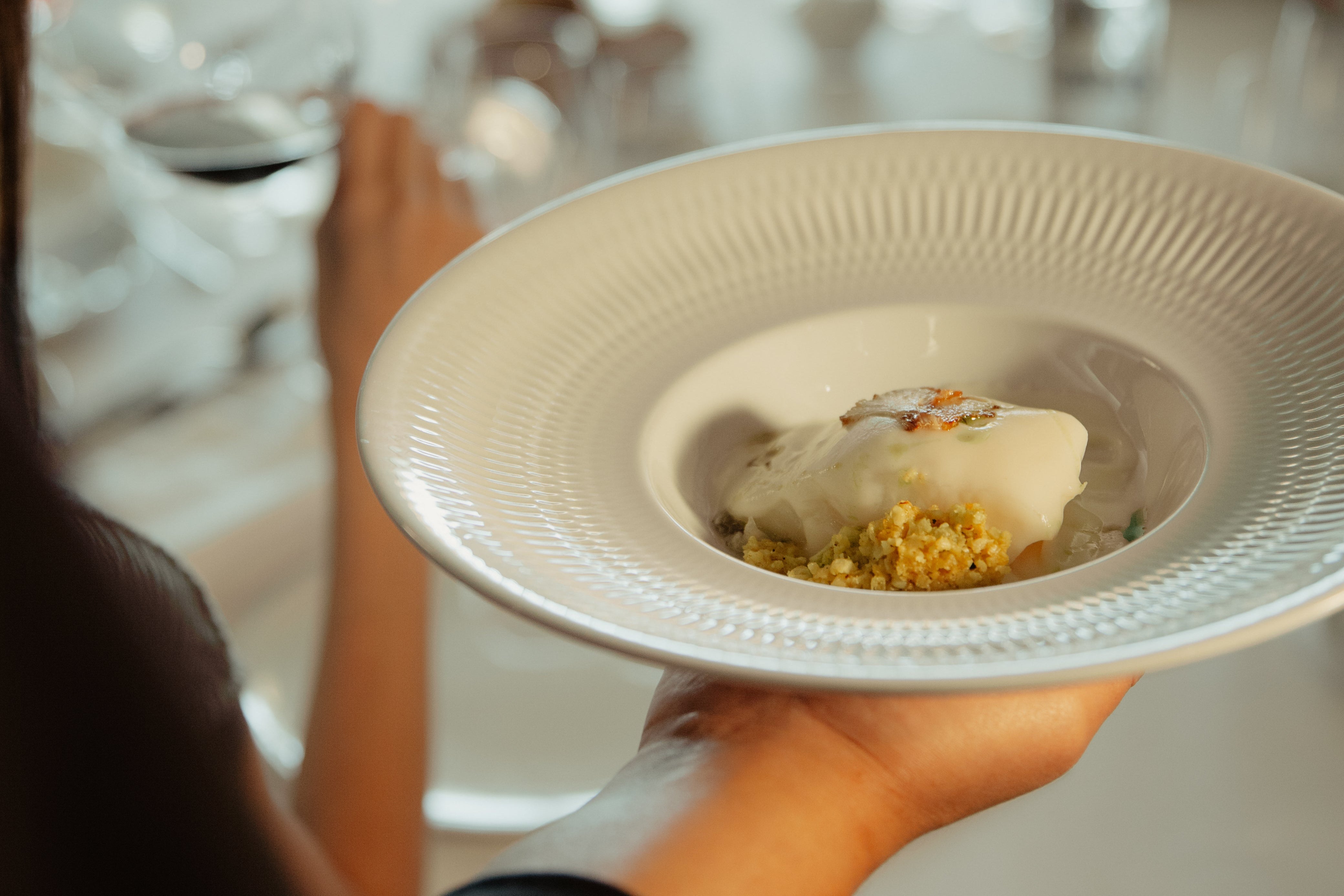 Tatsächlich sind die Weinbegleitungsoptionen bereits definiert, und es gibt zwei: klassisch und Premium. Unser Ziel ist es, dass das Degustationsmenü diese Weine ergänzt und die Region, in der wir uns befinden, mit lokalen, saisonalen Produkten repräsentiert.