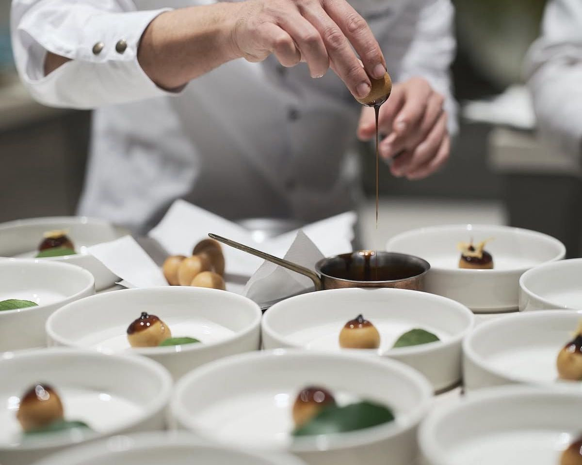 Einerseits gibt es den technischen Aspekt: die Wahl eines Tellers, der sich den Anforderungen des Anrichtens anpasst, Soßen oder Flüssigkeiten aufnehmen kann oder das Schneiden der Speisen bei Bedarf erleichtert. Andererseits hat Geschirr eine emotionale Dimension, die mit der Geschichte und Absicht hinter jeder Kreation verbunden ist.