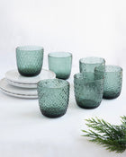 Set of 6 Textures Mix Olive Green glasses + Textures Clear water jug.An ideal pack to add a touch of colour to your table.